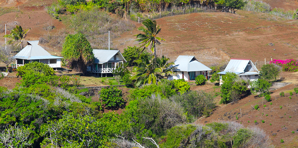 A l'entrée du village de Hokatu, les bungalows de la pension de Maurice et Delphine sont nichés dans la tranquillité des hauteurs. 5 bungalows très aérés offrent une vue spectaculaire sur le magnifique rocher de Hane qui émerge fièrement de l'océan. Un petit sentier mène à la plage plus bas où des piscines naturelles promettent une baignade rafraîchissante. Les repas sont pris en commun sur la terrasse de la maison de vos hôtes, au cœur du village. La cuisine, haute en saveurs, est à base de produits locaux et de spécialités de l'île. Une atmosphère typiquement marquisienne dans un cadre magnifique et reposant sur fond de légendes (5 bungalows : capacité 3 adultes ou 2 adultes + 2 enfants).