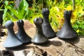 Retour en arrière : Maurice, 69 ans, Delphine, 65 ans, se sont mariés civilement à Mahina en 1978, puis dans la petite église catholique de Hokatu (elle est de Hokatu, lui du village voisin de Hane). A 9 ans, Maurice fit la rencontre de Ioane, un sculpteur de Nuku Hiva, mais le jeune garçon ne fut pas été très emballé ; les gouges coupantes lui semblaient difficiles à manier et réaliser une sculpture digne de ce nom était impossible à ses yeux. A partir de 14 ans, il fut donc maçon à Tahiti, puis rentra en 1969 à Ua Huka pour participer à la construction de la piste de l’aérodrome (la première des Marquises), avant de revenir à Tahiti et de passer trois ans à Hao, toujours comme maçon (de 1970 à 1973).