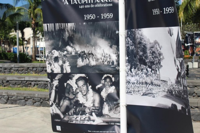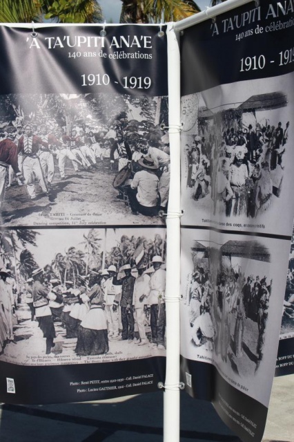 TAHITI, le 5 juillet 2021 - L’exposition urbaine ‘A Ta’upiti Ana’e qui s’est ouverte récemment sur le front de mer propose de dérouler la généalogie du Heiva à travers un retour en images sur 140 années de célébrations et de festivités. Des trésors ont été retrouvés pour l’occasion.