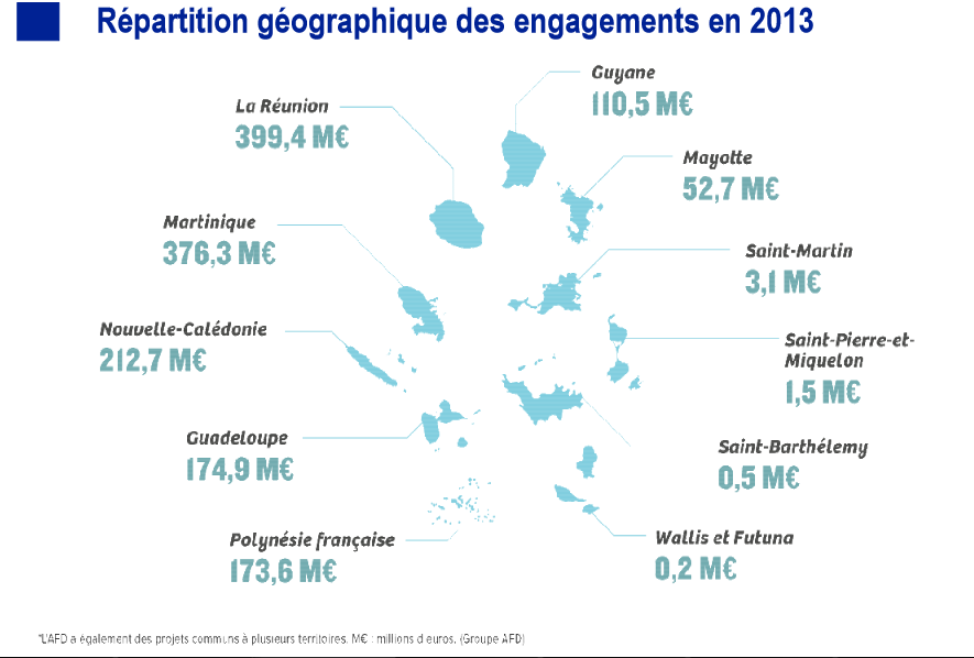 Le rapport d’activité 2013 de l’Agence Française de Développement (AFD), publié ce mardi 3 juin 2014, présente les investissements en Outre-mer de l’organisme. En tout, ce sont plus de 1,5 milliard d’euros (177 milliards Fcfp) de financements qui ont été partagés entre neuf territoires ultramarins, pratiquement stable depuis 2012 et conforme à l’objectif du gouvernement métropolitain. Pour la Polynésie, les prêts bonifiés, les prêts non bonifiés, les garanties bancaires et le refinancement des banques locales par l’AFD représentaient 20,5 milliards de francs cfp en 2013.