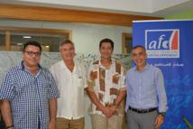 De gauche à droite : Frédéric Torrente, anthropologue au CRIOBE ; François Gaulme chercheur, spécialiste d'études à l’AFD ; Tamatoa Bambridge socio-anthropologue et directeur de recherche au CRIOBE, et Frédéric Audras, directeur de l’agence de Papeete de l’AFD.