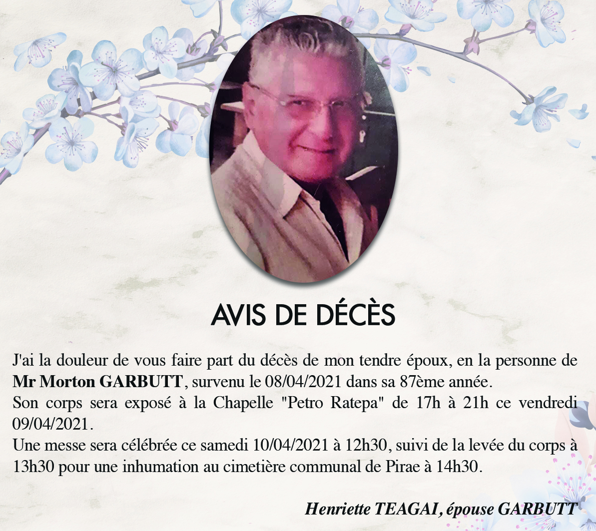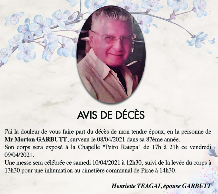 AVIS DE DECES - FAMILLE GARBUTT