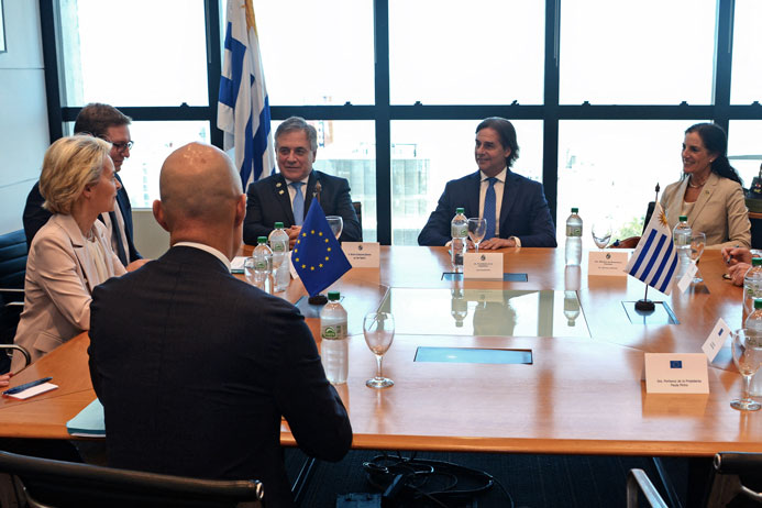 Mme von der Leyen, qui avant son arrivée jeudi en Uruguay avait dit sur X que "la ligne d'arrivée de l'accord UE-Mercosur est en vue. Travaillons ensemble, franchissons-la", doit donner une conférence de presse commune avec les présidents brésilien Luiz Inacio Lula da Silva, argentin Javier Milei, uruguayen Luis Lacalle Pou et paraguayen Santiago Peña.