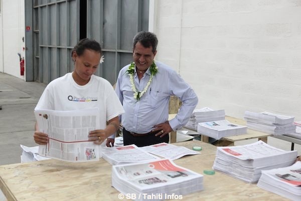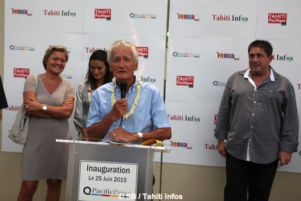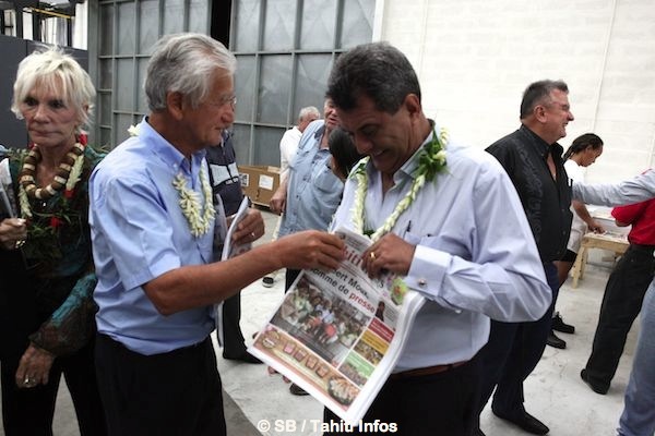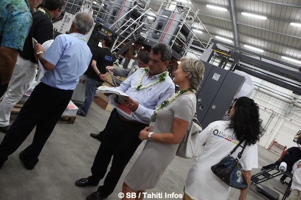 PAPARA, le 26 juin 2015- L'homme d'affaire Albert Moux a inauguré hier sa nouvelle imprimerie à Papara en présence de nombreux convives. Le journal Tahiti Infos dans sa nouvelle formule a pu être imprimé en direct devant les invités qui sont repartis en fin de soirée avec leur journal du lendemain sous le bras.