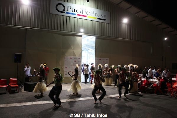 Très bonne ambiance jeudi soir lors de l'inauguration de la nouvelle usine Pacific Press, située à Papara. Sarah -Olivia Moux, gérante de l'entreprise a pris la parole devant plus de 200 personnes qui avaient fait le déplacement en fin de journée pour assister à cet évènement. Albert Moux a ensuite présenté son parcours, décrivant 27 ans d'attachement aux métiers de la presse pour aboutir à réaliser ce "rêve". Il dispose à présent de son propre outil de production qui lui permettra de développer ses supports ( Fenuacommunication : Tahiti Infos, Fenuatv, Tahiti Pacifique...) et proposer ses prestations d'impression. L'imprimerie a été montée en temps record et c'est grâce à la mobilisation des toutes les équipes et une parfaite coordination que le premier Tahiti Infos nouvelle version a pu sortir en direct hier soir devant les yeux les convives.