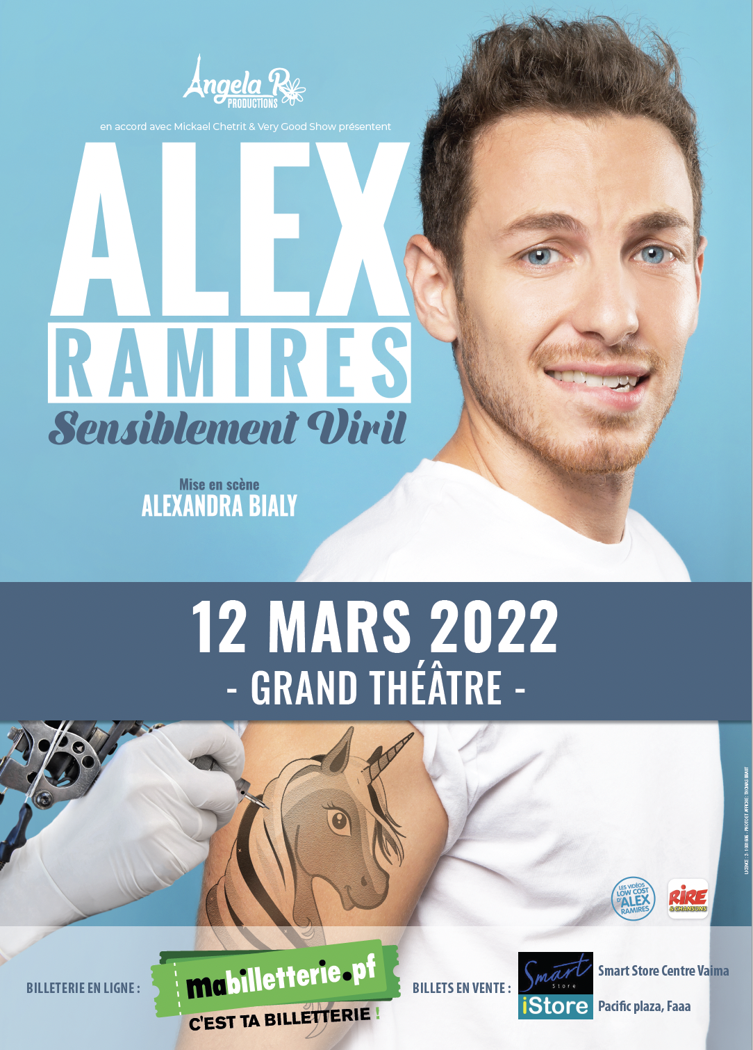 TAHITI, le 6 mars 2022 - Tahiti, le 7 mars 2022 - Alex Ramirès sera à Tahiti pour présenter son dernier one-man-show au Grand théâtre, le 12 mars. L’humoriste, qui se donne toujours à "100 %" sur scène, se réjouit de découvrir la Polynésie et de faire rire les spectateurs avec son dernier one-man-show Sensiblement viril.