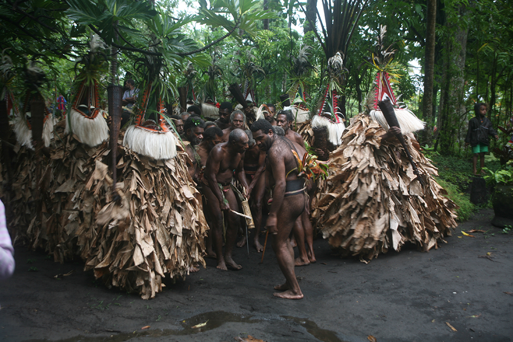 Pour les 7 500 habitants de l’île, ce qu’ils appellent, au singulier, “le volcan” est un site sacré. Mais ils savent aussi que des visiteurs étrangers viennent régulièrement pour approcher les cratères et les photographier. Dans le respect de la kastom, la coutume, des hommes jeunes et en bonne santé conduisent au sommet ces curieux touristes, qui, par mesure de sécurité comme par respect des sites tabu ne peuvent pas aller n’importe où, n’importe comment. Les esprits ne le tolèreraient pas et un guide doit toujours les accompagner.