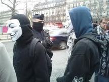 "C'est sous couvert d'anonymat que la révolution est née", proclament des pancartes, allusion aux actions spectaculaires des pirates informatiques siglés "Anonymous" qui se sont multipliées ces dernières semaines dans plusieurs pays.