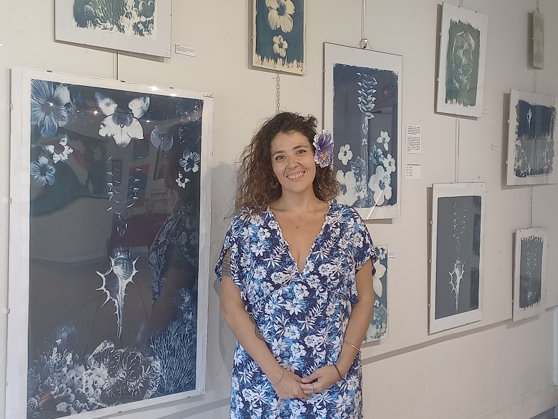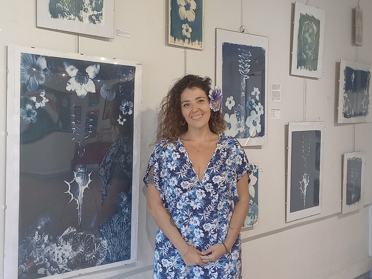 Océane Fouet expose, en plus des peintures, des cyanotypes. Elle révèle pour la toute première fois cette voie artistique. Le cyanotype est l’un des tout premiers procédés de tirage photographique inventé au XIXe siècle. Il repose sur l’utilisation de sels ferriques qui, exposés au soleil, deviennent ferreux et produisent une image couleur bleu de Prusse une fois rincée à l’eau. Des variations sont possibles pour produire d’autres teintes. “Avec ce travail, je questionne la diversité”, explique Océane Fouet.