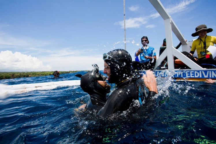 Rappelons que l’histoire de l’apnée de compétition est marquée par des accidents tragiques. Herbert Nitsch était descendu à 214m en « no limit », c’est à dire avec une gueuse pour descendre et un ballon d’air pour remonter, et avait été victime d’un accident qui avait failli lui couter la vie. Lors de ces championnats organisés par (AIDA), il n’y avait pas eu de « no limit ». On revient en quelque sorte à quelque chose de plus « raisonnable. »