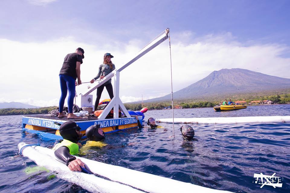 « Mes derniers championnats, c’était en Egypte en 99, l’apnée n’était pas aussi développé qu’aujourd’hui. En immersion libre sans palmes j’étais à 55-60 mètres, en gueuse à Tahiti en 2006 j’ai fait 141 mètres en no-limit. Depuis j’ai progressé. Monter mon école à Bali avec désormais une belle équipe m’a laissé le temps de m’entrainer. J’y pensais depuis quelques années. J’ai de bons copains avec qui m’entrainer donc on se motive bien. »