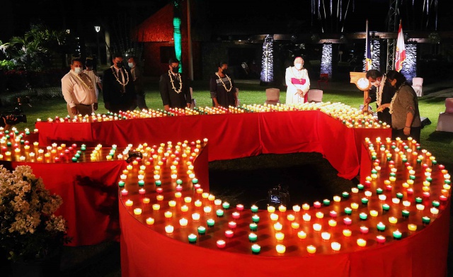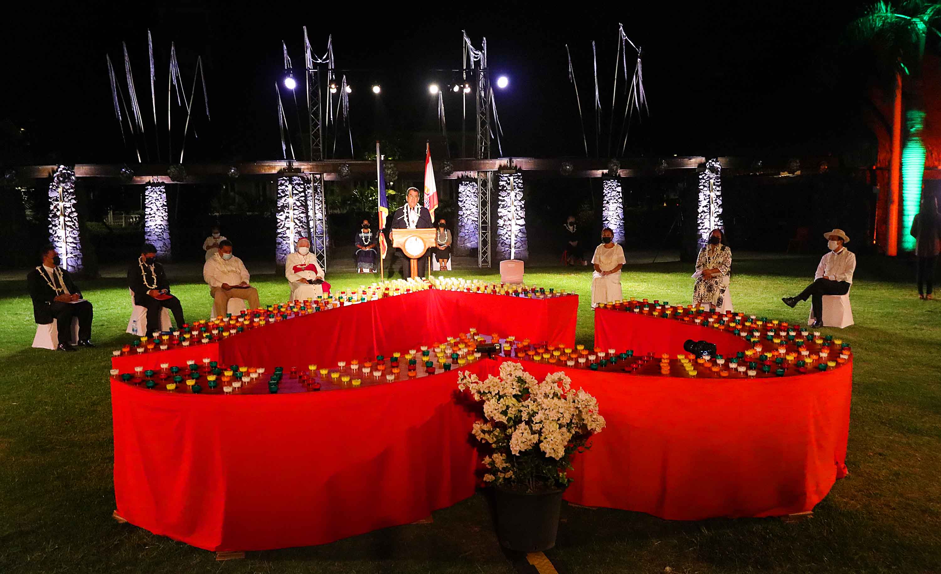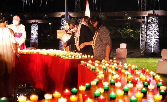 "La pandémie de coronavirus nous affecte tous, nos îles et le reste du monde, depuis près d'un an et demi maintenant". Dans un discours prononcé samedi soir au parc Paofai lors d’une cérémonie oecuménique en hommage aux victimes du coronavirus, Edouard Fritch a insisté sur l’idée de solidarité et d’union pour surmonter la pandémie sans précèdent qui frappe depuis de longues semaines la Polynésie française. "Aujourd'hui, nous voulons commémorer toutes les personnes décédées du virus, souvent dans des circonstances très solitaires. Nous voulons commémorer leurs noms, leurs visages, leurs vies. Ils nous manquent et nous ne les oublierons jamais. Alors allumons ce soir toutes ces bougies pour manifester tout notre amour à toutes ces personnes qui nous ont quittées".