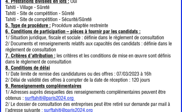Appels d'offre et communiqué