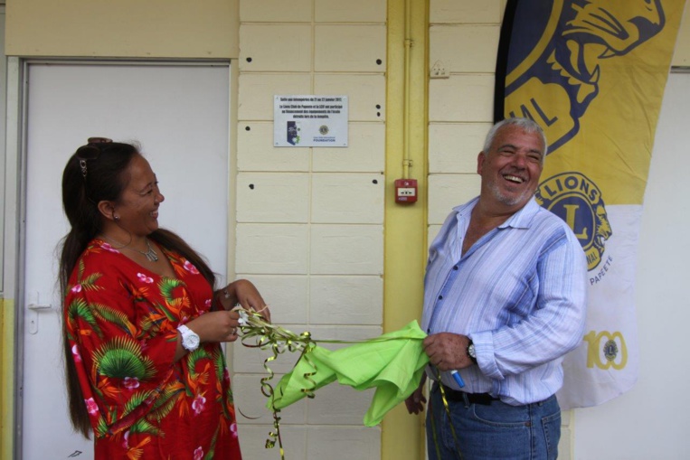 Une petite cérémonie a eu lieu à l'école de Taaone ce vendredi 25 août en présence d'une délégation du Lions Club de Papeete. Pour ne pas oublier cet événement, une plaque commémorative a été inaugurée par le Président du Lions Club, Patrick Bagur, et une enseignante de l'école.