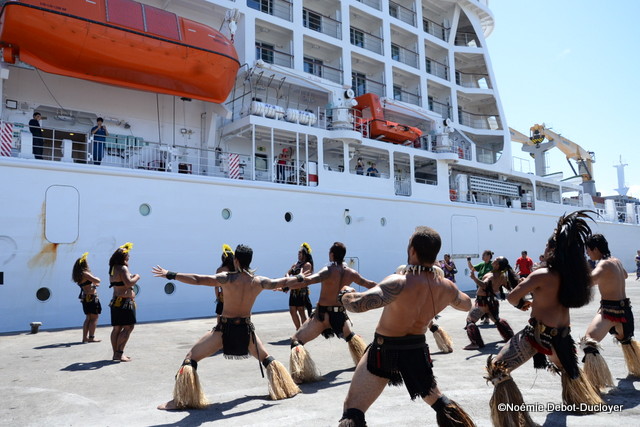 Au son des pahu marquisiens et des chants traditionnels, l'Aranui 5 a accosté au quai de Motu Uta lundi matin. Philippe Wong, l'armateur de la compagnie polynésienne de transport maritime, entouré de sa famille, est soulagé de voir son navire à Tahiti. Aranui 5 a été construit sur un chantier naval chinois et a été mis à flot pour la première fois en mer de Chine le 8 février dernier. Désormais, " le navire va rester encore un mois à Papeete pour finaliser les derniers aménagements et familiariser l'équipage", explique l'armateur. La croisière inaugurale débutera le 12 décembre et passera par le festival des îles Marquises.