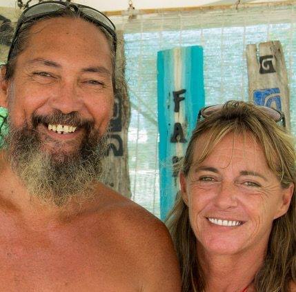 Cécile et Enoha se sont rencontrés à Moorea il y a 18 ans. Ils sont aux Tuamotu depuis 2002. Enoha a été et reste guide touristique. Il a beaucoup à dire sur sa terre, son histoire, ses légendes mais aussi ses plantes. Cécile, Polynésienne d'adoption est très attirée par la décoration.