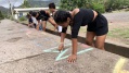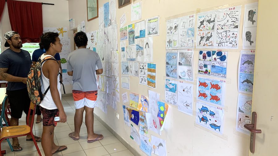 Ua Pou, le 9 juin 2022 - Pour le trentième anniversaire de la Journée mondiale de l’océan, les élèves du collège de la Terre des Hommes à Ua Pou et leurs professeurs ont participé mercredi à plusieurs ateliers consacrés à l’univers marin. Notamment un projet intitulé La mer commence ici, du Street Art éphémère au bord des caniveaux pour rappeler que les déchets jetés sur terre finissent à la mer.