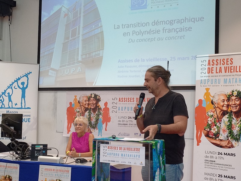 La conférence inaugurale a dressé le contexte démographique avec Nadine Jourdan et Jérémie Torterat de l’Institut de la statistique de la Polynésie française.