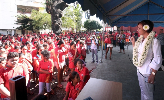 A 8 h 45, les 820 élèves du collège de Taaone se sont tus pendant une minute avant de chanter La Marseillaise, hymne national français.
