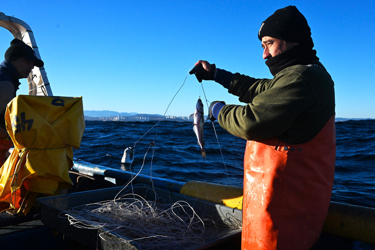 A sept milles nautiques (13 km) des côtes, au large de la ville de Valparaiso, il déploie sa palangre, une longue ligne garnie de 2.000 sardines faisant office d'appâts. Lorsqu'il la remonte, un seul merlu s'agite au bout.