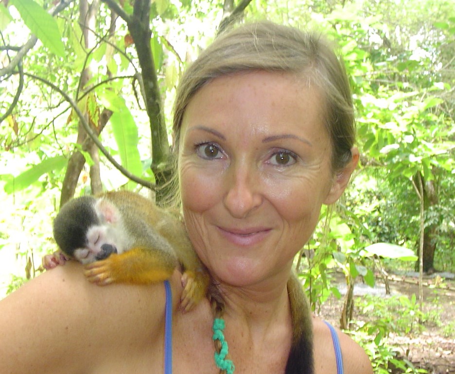 À tout juste 40 ans, en 1999 elle a eu besoin de changement. La compagnie d’assurance où elle travaillait avait été rachetée par un gérant américain. Cela a été le déclic. Allegra Marshall, qui voyageait souvent, a pris la direction du Panama pour rejoindre un correspondant. “Je m’y suis plu. J’y suis restée jusqu’en 2006.” Sur place, elle a fondé le refuge Mono Feliz, un espace qui accueille une espèce de singe victime de trafic. “Il s’agit des singes écureuils. Ils ne sont pas plus gros qu’un chat à l’âge adulte, sont utilisés comme animaux de compagnie mais rapidement abandonnés.” Le refuge se trouve en pleine forêt, isolé. Comptez deux jours pour y arriver de Panama City : bus, camion, marche. “En route, tu dors avec un coupe-coupe à proximité du lit pour te protéger des serpents et des gens malfaisants.”