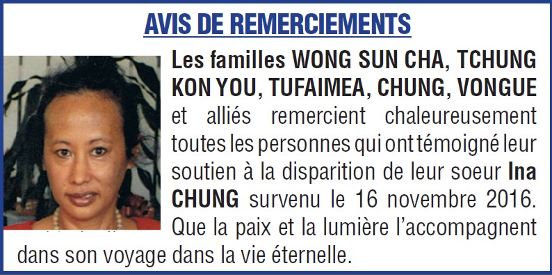 Avis de remerciements familles CHUNG, VONGUE