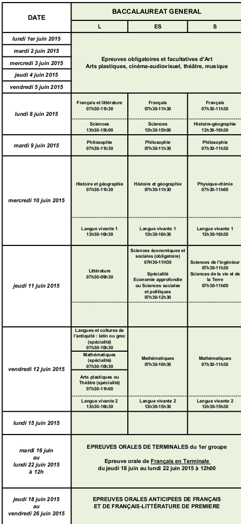 CALENDRIER DU BACCALAUREAT GENERAL ET TECHNOLOGIQUE