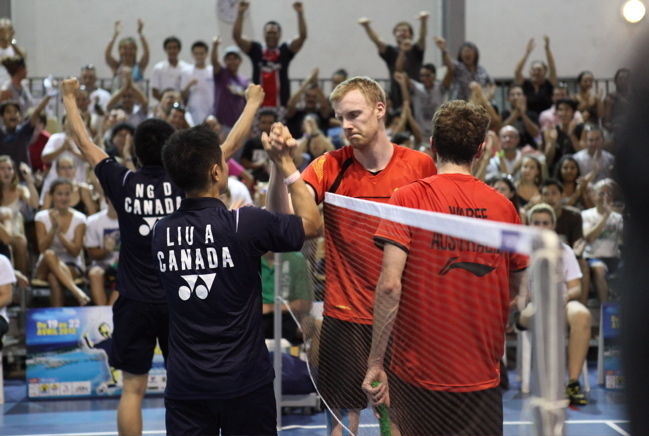 La finale homme a vu la victoire de Chun Seang TAN, malaysien contre Misha ZILBERMANN Israelien, au terme d’un match impressionnant. Le premier set fut remporté par 30 à 29 fait rarissime, puisqu’il faut arriver à 21 pour gagner, comme au ping pong. Le deuxième set plus facilement, 21 à 8. Le gaucher malaysien a fait preuve de coups extrêmement puissant et précis. Il a eu de surcroît de la chance, à chaque fois que le volant touchait le filet il retombait du bon côté pour Chun Seang TAN.