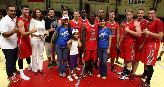 Jeudi 18 avril 2013 à Pirae. Cette 4ème et dernière soirée a clôturé la série de rencontres amicales entre l’équipe américaine et les différentes sélections tahitiennes. Le score est sévère puisque les étrangers gagnent avec une quarantaine de points d’avance alors que lors du premier match il n’y avait eu qu’une vingtaine de points d’écart.