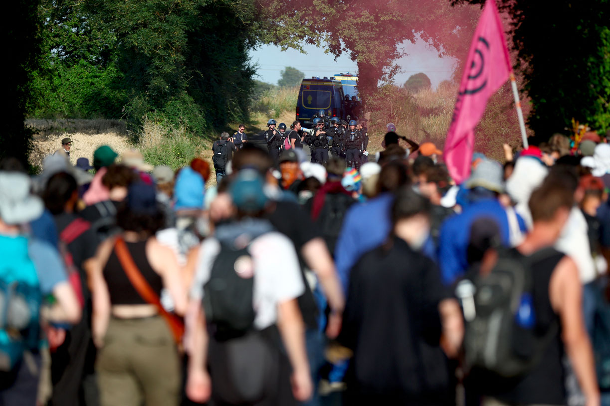 Le "cadre d'action" des manifestations annonçait cependant des "formes de désobéissance de masse" destinées à "impacter concrètement leurs cibles": "bassines" vendredi, "complexe agro-industriel" samedi au port de La Rochelle où une autre manifestation est prévue.