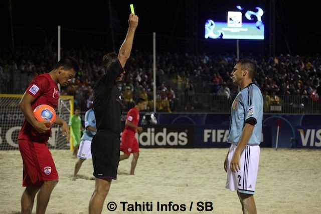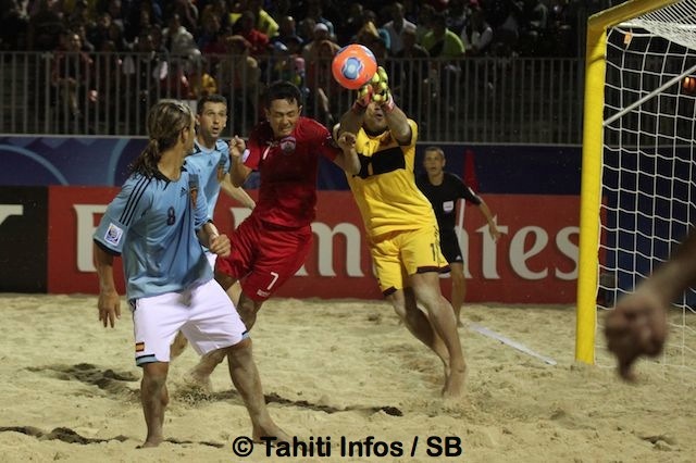 Dans le troisième tiers temps les Tiki Toa poussent vaillamment, Naea Bennett, Teva Zaveroni, Patrick Tepa font de leur mieux, mais semblent impuissants face à une équipe espagnole bien en place. Les cartons jaunes sont distribués des deux côtés. A trois minutes de la fin, Franck Levert frôle le deuxième but offert à l’adversaire avec une mauvaise relance. Sur un coup de pied arrêté, Raimana Lee Fung Kuee envoie un boulet de canon dans les buts espagnols et réduit le score à 4 à 2, c’est l’explosion de joie pour le public de To’ata, malheureusement ce sera le score final.