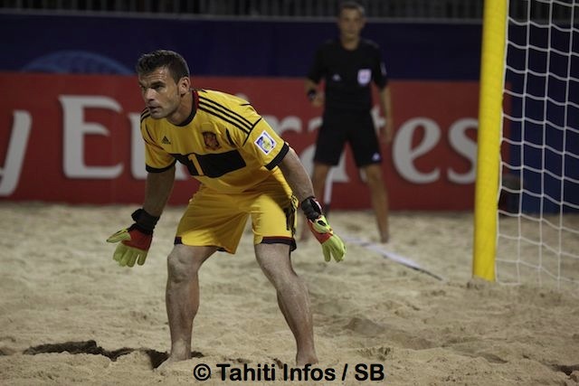 Les Tiki Toa se battent, ne se laissent pas faire, Raimana Lee Fung Kuee tente sa chance mais la balle passe au dessus. A trois minutes de la fin du tiers temps Franck Levert est sollicité et réalise un magnifique arrêt. Malheureusement, il rate sa relance qui atterrit directement dans les pieds de l’attaquant adverse qui frappe sans contrôle et assène le but du 3 à 0. Franck adresse un geste d’excuse vers son entraîneur. Tearii Labaste détourne de la poitrine une balle rapide qui touche le poteau espagnol, 40 secondes avant la fin de la première période.