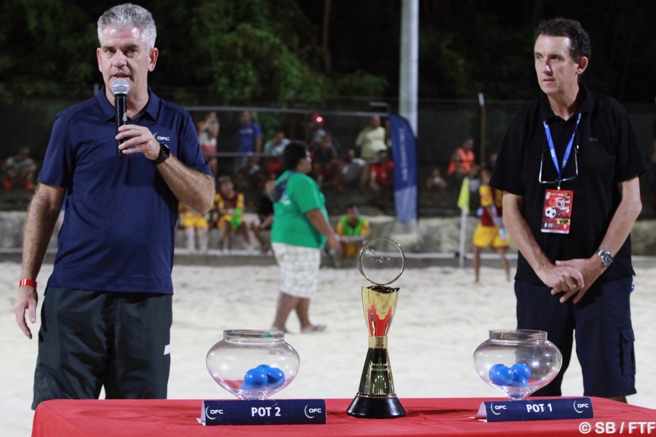 Ce mardi soir, les deux équipes invaincues de la poule tahitienne se sont affrontées pour un match au sommet devant plusieurs représentants du football international. En effet, à la fin du premier tiers-temps, un tirage au sort définissant l’ordre des matchs du tournoi qualificatif de la prochaine Coupe du monde de beach soccer pour la zone Océanie a été effectué par Chris Kemp, directeur des compétitions de l’OFC.
