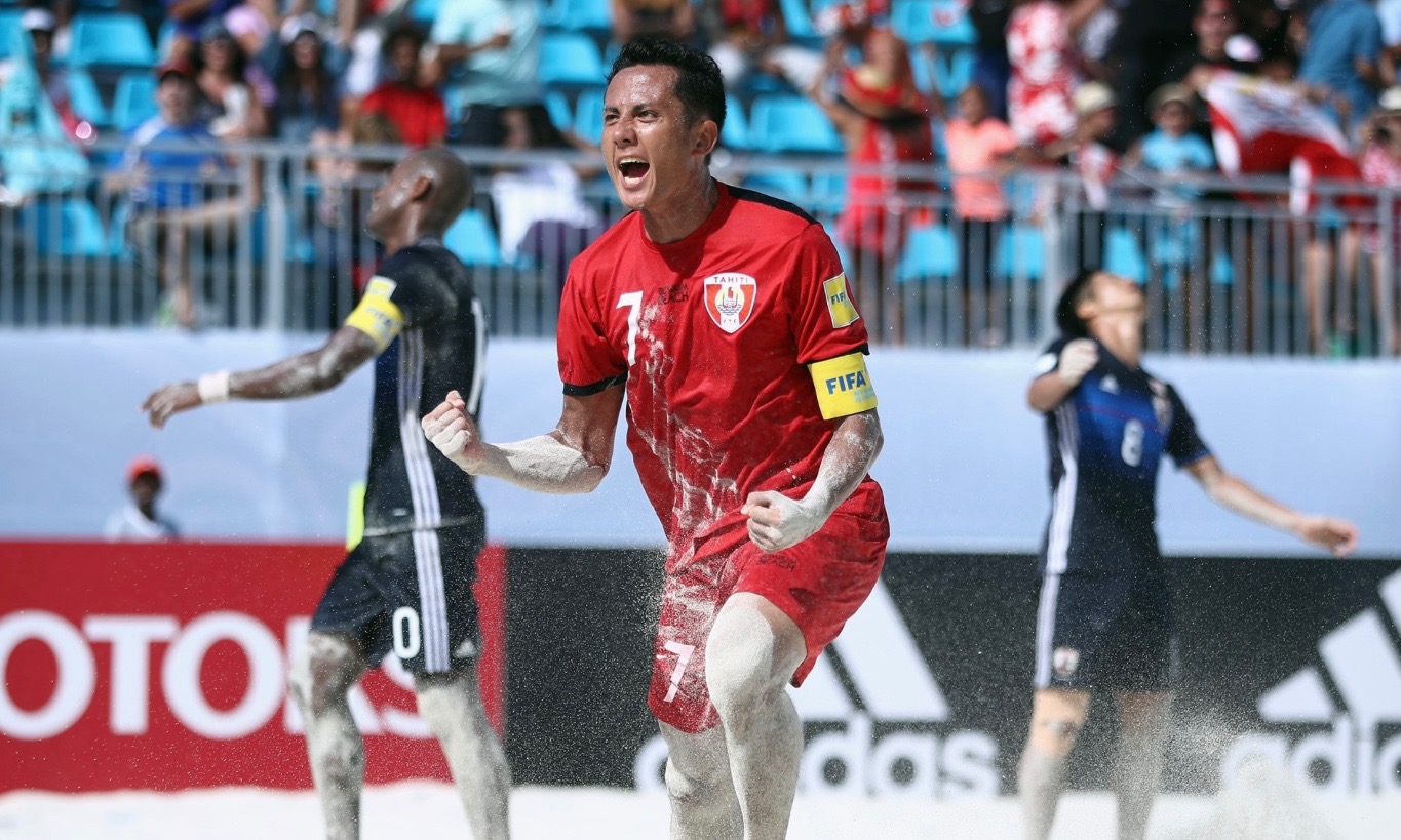 Tearii Labaste est particulièrement doué pour les retournés acrobatiques. Lors du premier match, toutes ses tentatives sont restées vaines mais dès le début du match contre le Japon, il tente à nouveau sa chance et le tir se fait un peu plus précis. Il faudra le ralenti pour se rendre compte que c’est finalement Heiarii Tavanae qui, dos au but, détourne malicieusement la balle dans le but : 1-0 pour Tahiti à la 4’.