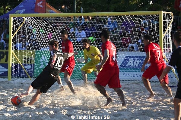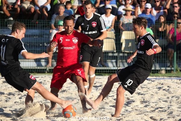 Dans le dernier tiers temps, Raimana Li Fung Kuee, qui fait comme la veille un super match, obtient un coup franc qu’il transforme en but : 5-4 pour Tahiti qui a fait la course en tête depuis le début du match. Mais Heimanu ‘souffle’ la balle à un Suisse lors d’un retourné acrobatique, c’est un penalty qui sera transformé par la Suisse, qui égalise à 5-5.