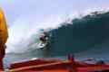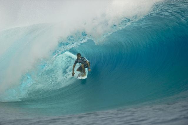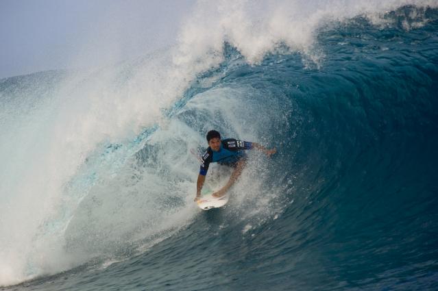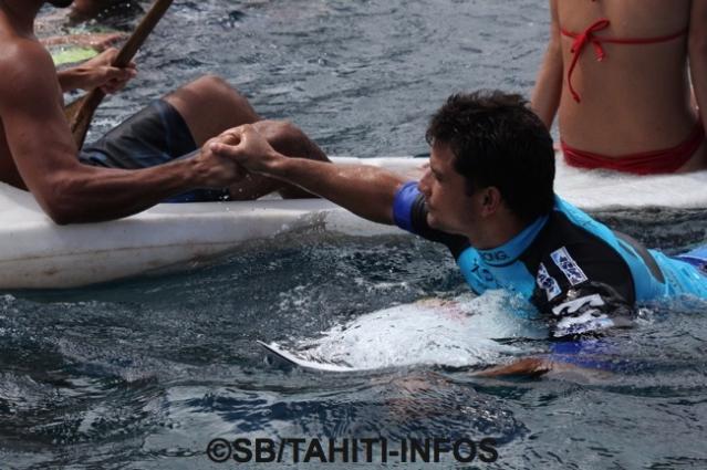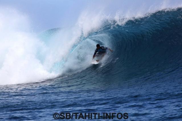 Malheureusement Michel Bourez s’est fait éliminer par CJ Hobgood. L’américain connaît bien Teahupo’o et allie courage, adresse et stratégie en fin compétiteur. Il gagne avec un score de 18.30 (cumul de ses deux meilleures vagues) contre 15.17 pour Michel qui n’aura pas démérité, loin de là. Il a attendu en vain une dernière vague qui lui aurait permis de s’exprimer, malheureusement elle n’arriva pas.