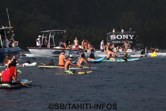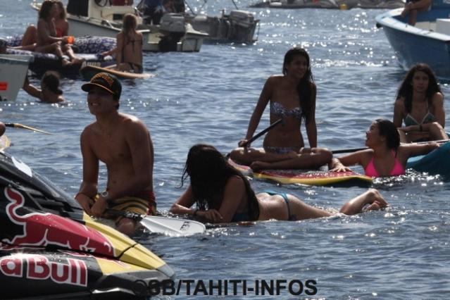 On a reconnu les piliers du surf local aux commandes de leur jet ski à fin d’assurer la sécurité de tous : Vetea David, Patrice Chanzy, Arsène Harehoe, Didier Tin Hin, Eric Teihotu, Viri Teiva etc…