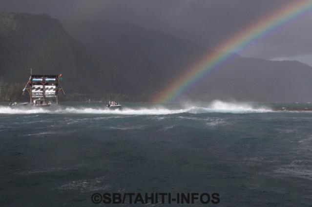 Les prévisions météo sont de plus en plus précises. A 6H30 le temps était pluvieux, le vent du sud, le mara’amu bien présent mais finalement la compétition a débuté vers 8H00 avec son lot de surprises.