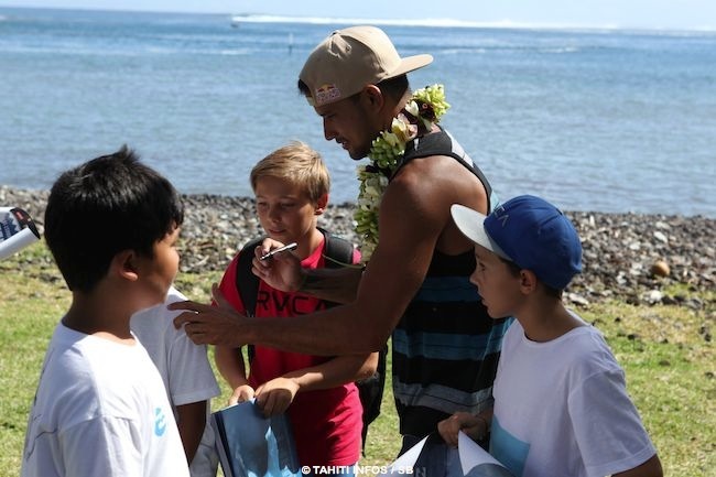 Gabriel Medina accepte de se prêter au jeu de l’interview avec disponibilité. Michel, que nous avons interviewé récemment, a également accepté de nous dire quelques mots et de nous donner des nouvelles de son frère Kevin Bourez, récemment blessé, à qui nous adressons nos vœux de prompt rétablissement. Les deux surfeurs ne sont pas apparus comme rivaux, ils étaient détendus et contents d'être à Teahupo'o.