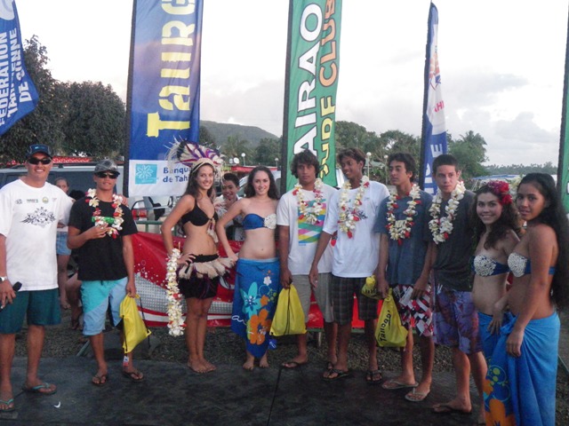 Pour le fun, une course de paddleboardeurs et de longboardeurs a été organisée ! De nombreux lots étaient offerts par les différents partenaires du Vairao Surf Club tel que : des places de cinéma, des bracelets « Power Balance », une nuit pour 2 personnes au Radisson et au Sofitel Maeva Beach… Tout le monde à reçu un lot !