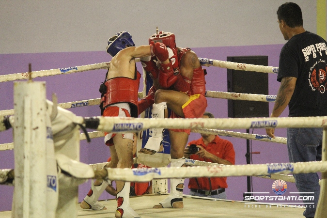 L’autre affrontement intéressant mettait en scène Henere Poroi du Tini TB face au boxeur professionnel Tinitua Neagle qui représentait le club Tamarii Muay Thaï. Le poulain de Roland Tiapoi a fait preuve d’une audace à toute épreuve face aux qualités pugilistiques de Tinitua grâce à des séries de « low-kicks » pour ensuite chercher le K.O. avec un hight kick mais l’expérience et la garde haute de Tinitua ont su déjouer la stratégie de son adversaire.