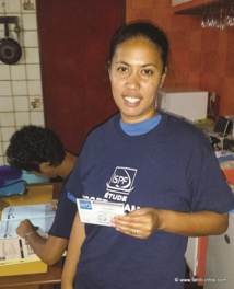 Vaitiare Rimaono, superviseur de la zone Mahina-Faa'a et patronne de notre enquêteur Eren (derrière elle en train de remplir notre carnet)