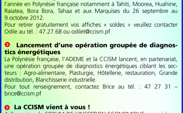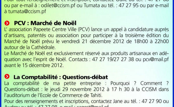 Quelques liens utiles : - Animations de Noêl 2012, La CCISM, en coordination avec Papeete Centre Ville, organise pour les Fêtes de fin d’année une...