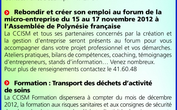 Quelques liens utiles : - Rebondir et créer son emploi au forum de la micro-entreprise du 15 au 17 novembre 2012 à l’Assemblée de Polynésie...