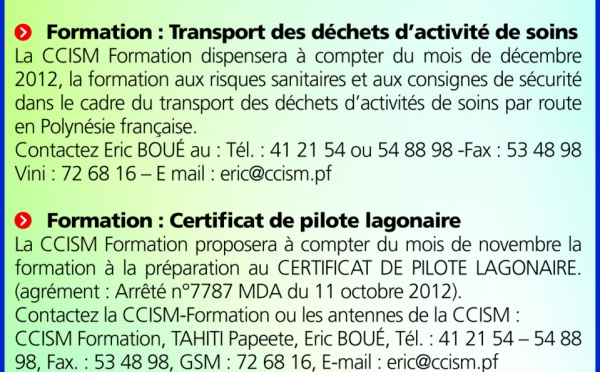 Quelques liens utiles : -Formation : Transport des déchets d'activité de soins -CCISM Formation : Certificat de Pilote Lagonaire -Vous êtes...