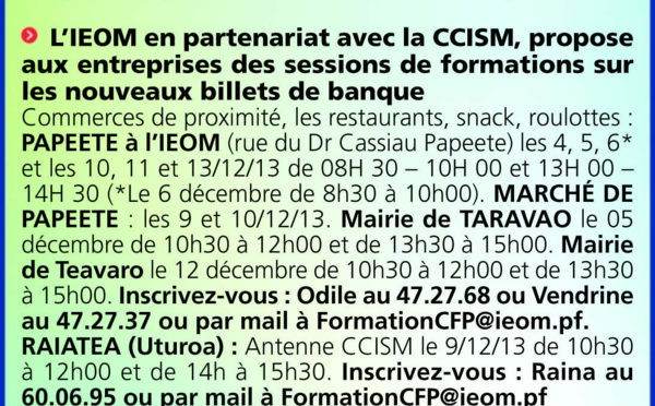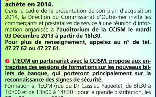 Quelques liens utiles: - Calendrier des permanences décentralisées de la CCISM en Décembre 2013 - L’IEOM en partenariat avec la CCISM, propose aux...