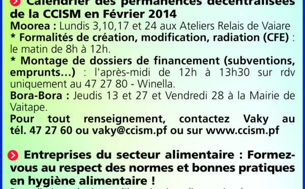 Quelques liens utiles: - Calendrier des permanences décentralisées dans les îles - La Polynésie française, l’ADEME et la CCISM organisent en...