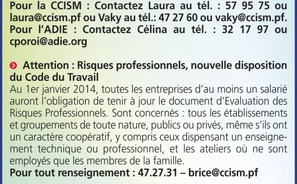 Quelques liens utiles: - Calendrier des permanences décentralisées de la CCISM en Novembre 2013 - Attention : Risques professionnels, nouvelle...