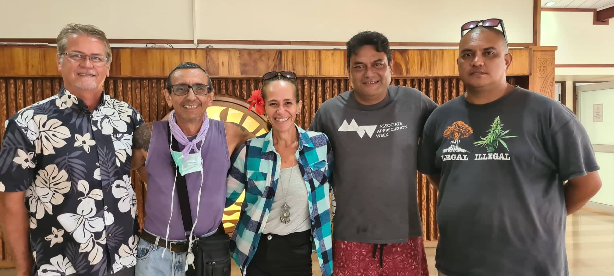 de gauche à droite Philippe Cathelain-Tauotaha de l'Institut du cannabis, Heitapu, Karen, Hérald et Karl de l'association THC