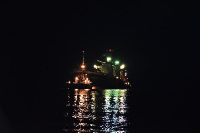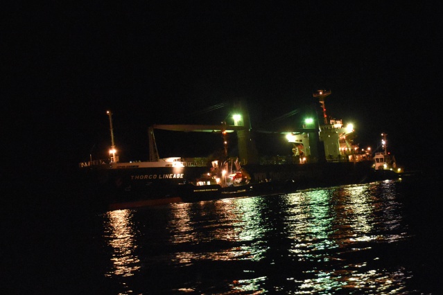 Il aura fallu près d'une heure de manoeuvres, de stress et de frayeurs pour que le Thorco Lineage touche enfin le quai du Port de Papeete. Vers 22h30 les opérations d'amarrages du cargo ont enfin pu commencer pour le plus grand soulagement de tout le monde et surtout des 18 membres d'équipages du cargo.